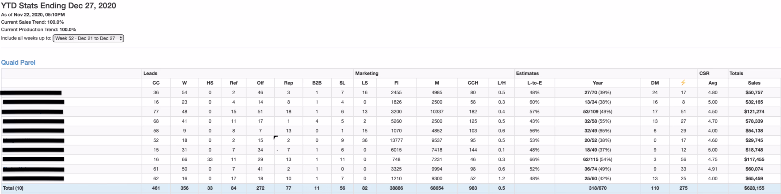 - Close Rate: 318 sold / 670 estimates = ~47%