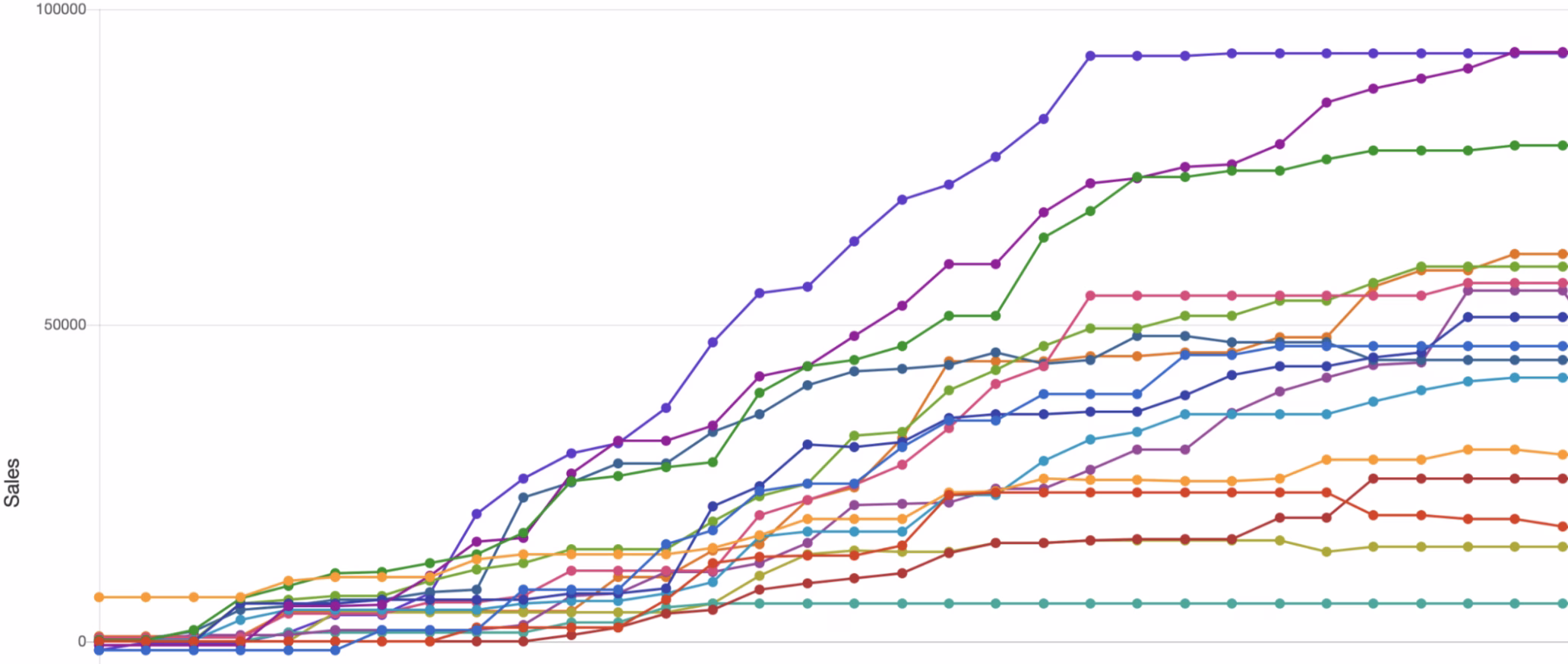 - Visible growth curves across the year in sales, production, and estimates, with the biggest ramp occurring after the consulting phases began (Weeks ~4–19 onward).